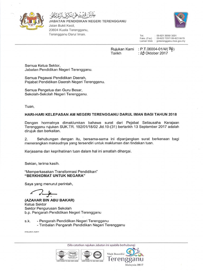 Hari Kelepasan Am Negeri Terengganu 2018 Pdf Pdf